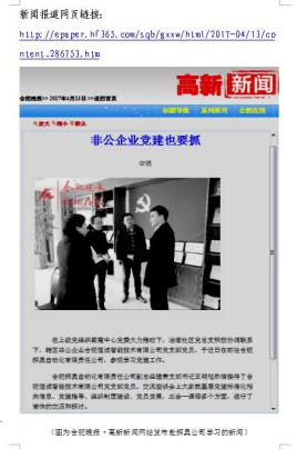 2017年3月31日,合肥恒誠(chéng)智能技術(shù)有限公司黨支部一行5人,赴合肥探奧自動(dòng)化有限責(zé)任公司參觀學(xué)習(xí)黨建工作,先后得到了高新區(qū)蜀麓中心先鋒網(wǎng)和合肥晚報(bào)的報(bào)道。