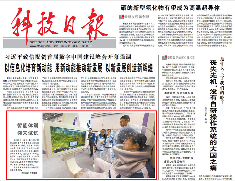 4月23日,《科技日報》頭版報道了我司自主研發(fā)的產(chǎn)品“勇闖高原”和“魔幻高原”該產(chǎn)品首次亮相蕪湖科博展取得了一致好評。