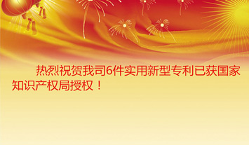 - 熱烈祝賀我司6件實(shí)用新型專利已獲國家知識(shí)產(chǎn)權(quán)局授權(quán)